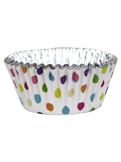 MULTI COLOUR POLKA DOT CUPCAKE CASES FOIL LINED X 30